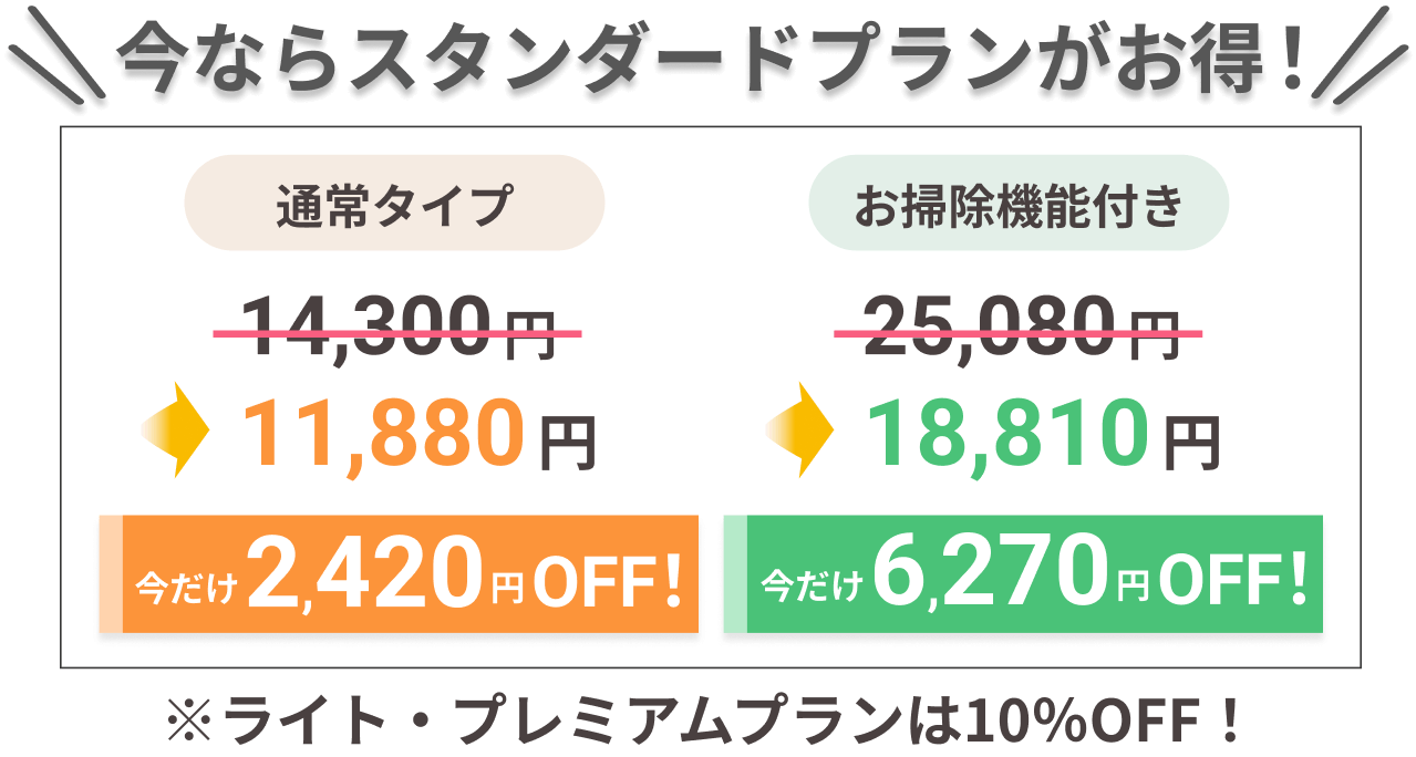 カジタクなら標準装備!2,000種類以上の菌に対応!約一年キレイが続きます。